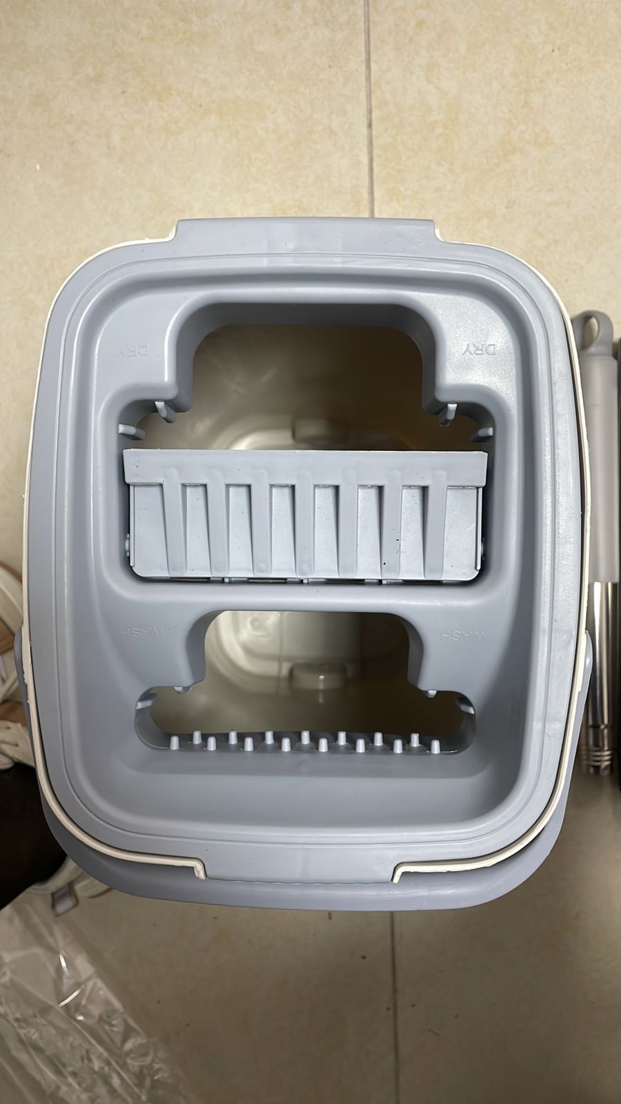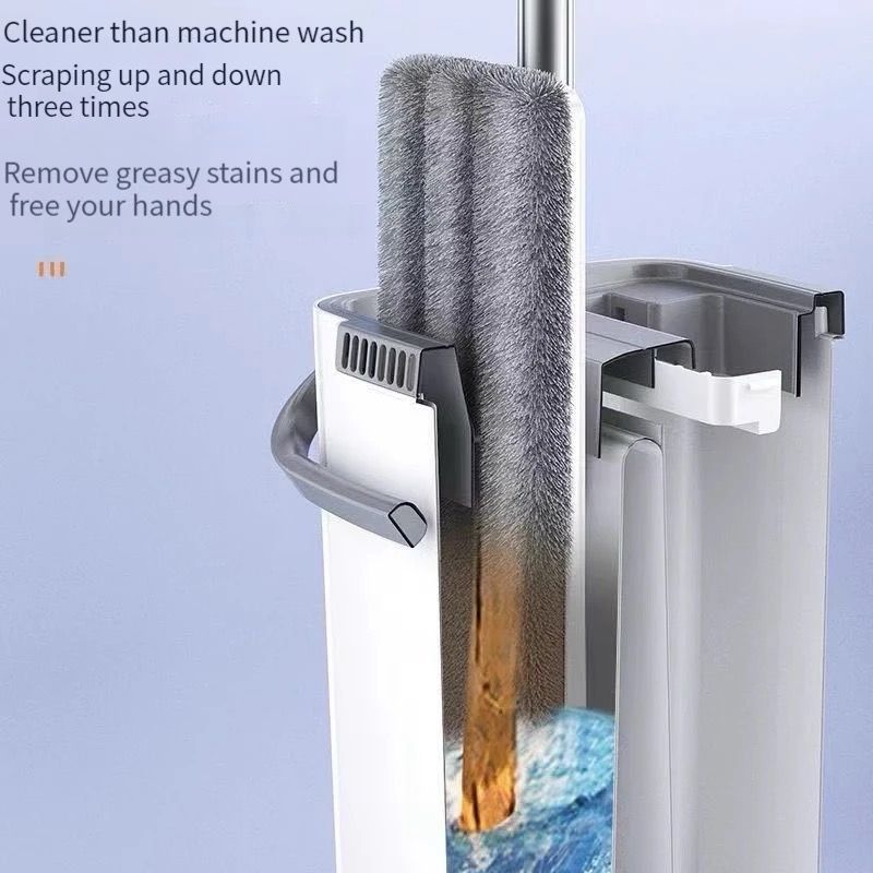 mopa y se pueden quitar y lavar rápida y fácilmente. Autoescurrido Con solo deslizar la barra hacia arriba y hacia abajo, puedes escurrir el agua y la suciedad en un minuto. Almohadilla de microfibra reutilizable La alfombrilla de microfibra flexible giratoria de